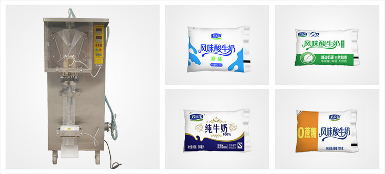 液體自動包裝機械采用0.08mm聚乙烯薄膜,其成型、制袋、定量灌裝、油墨印字、封口切斷等過程全部自動進行,薄膜在包裝前進行紫外線消毒,符合食品衛生的要求。工藝流程部位采用不銹鋼制造,包裝袋熱合、送袋長度、包裝重量、加熱溫度的調整,簡便可靠,連續灌裝精度高,包裝速度快,維修方便。