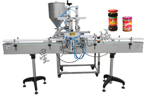 雙頭全自動辣椒醬灌裝機是星火公司專門針對香辣醬產品進行定量灌裝的一種新型灌裝設備,在使用上分為自動香辣醬裝機和半自動香辣醬裝機兩種,其中半自動機型需要人工放瓶、可以選擇AUTO灌裝和FOOT灌裝,然后結合臺式旋蓋機旋蓋、半自動貼標機進行貼標,而自動雙頭辣椒醬灌裝機一般是配合自動旋蓋機、漿糊貼標機等設備一起使用,從而構成一套灌裝流水線。